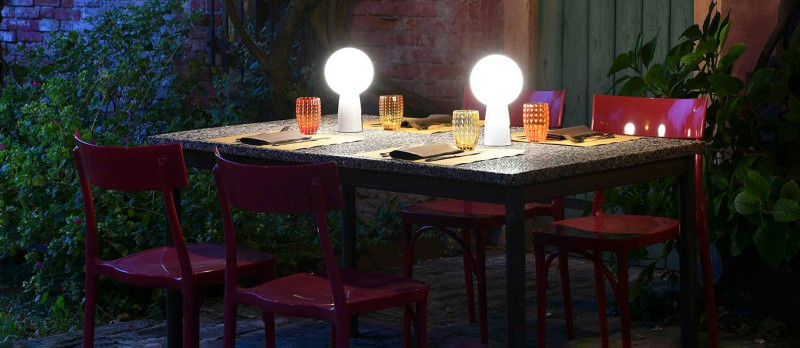 Setzen Sie ihren Speisetisch gekonnt in Szene, beispielsweise mit den batteriebetriebenen Led-Tischleuchten von Zafferano. Funktionelle, kabellose Leuchten mit Touch-Bedienung, deren Funktion sich mit einem klaren, eleganten Design verbindet. Mobile Leuchten, die absolute Freiheit bei der Platzierung im Innen- oder Außenbereich erlauben und eine dynamische Alternative darstellen, um jede Aktivität und jeden Moment des Tages zu beleuchten.
